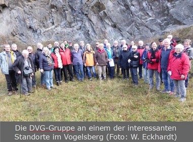 Die diesjährige Herbstexkursion der DVG führte vom 21. bis 23.10.2016 die Teilnehmer in den Vogelsberg. Von Mitglie-dern der Sektion Vogelsberg wurde man in Hanau-Steinheim am Main empfangen und konnte schon dort die südlichsten Ausläufer des Vogelsberg-Vulkanismus im Stadtbild und im Naherholungsgebiet bei Mühlheim/ Dietesheim erwandern. Manch einer war verwundert, so weit im Süden Basalte (Main-Trapp) des Vogelsberges anzutreffen. Auch hier sind Aufschlüsse von Vogelsberg - Ergussgesteinen zu finden, die aber infolge der Erosion seit dem Tertiär heute isoliert liegen.